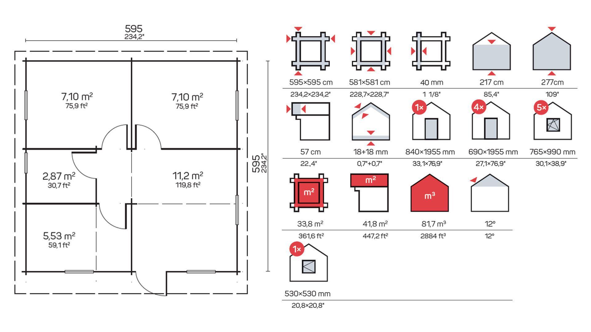 Set drvenih kuća PREMIUM debljine 40 uključuje sljedeće: