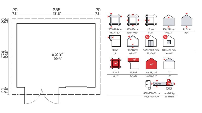 Vanjske dimenzije (širina x dužina): 355 x 294 cm